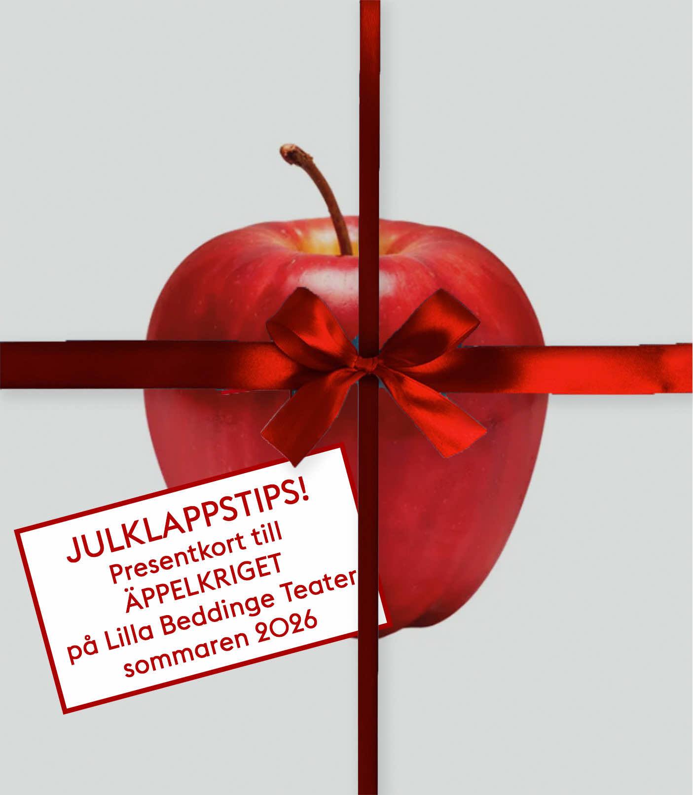 Nu finns det möjlighet att köpa presentkort till ÄPPELKRIGET som ska spelas på Lilla Beddinge Teater sommaren 2026 - en perfekt julklapp till dina nära och kära!